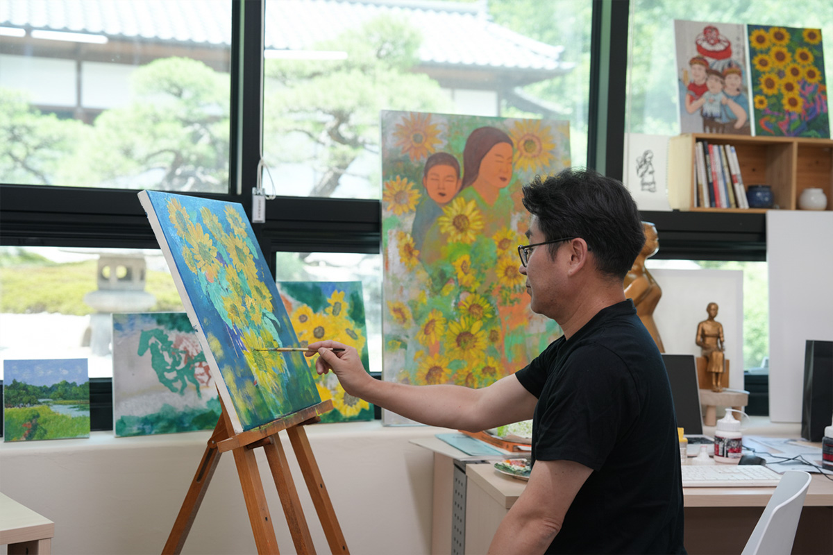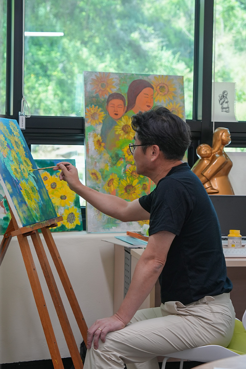 이곳에서는 누군가에게 보여주기 위한 작업이 아니라, 스스로에게 집중하는 작업이 가능했어요. 각자의 작업을 존중받는 분위기 속에서 제 리듬대로 그릴 수 있다는 점이 무척 편안하게 느껴졌습니다. 그 덕분에 붓을 드는 시간이 늘었고, 작업의 밀도도 조금씩 깊어졌습니다. 공간이 주는 안정감이 작업을 오래 이어가게 만드는 중요한 요소라는 걸 이번 레지던시를 통해 다시 느끼게 됐어요.